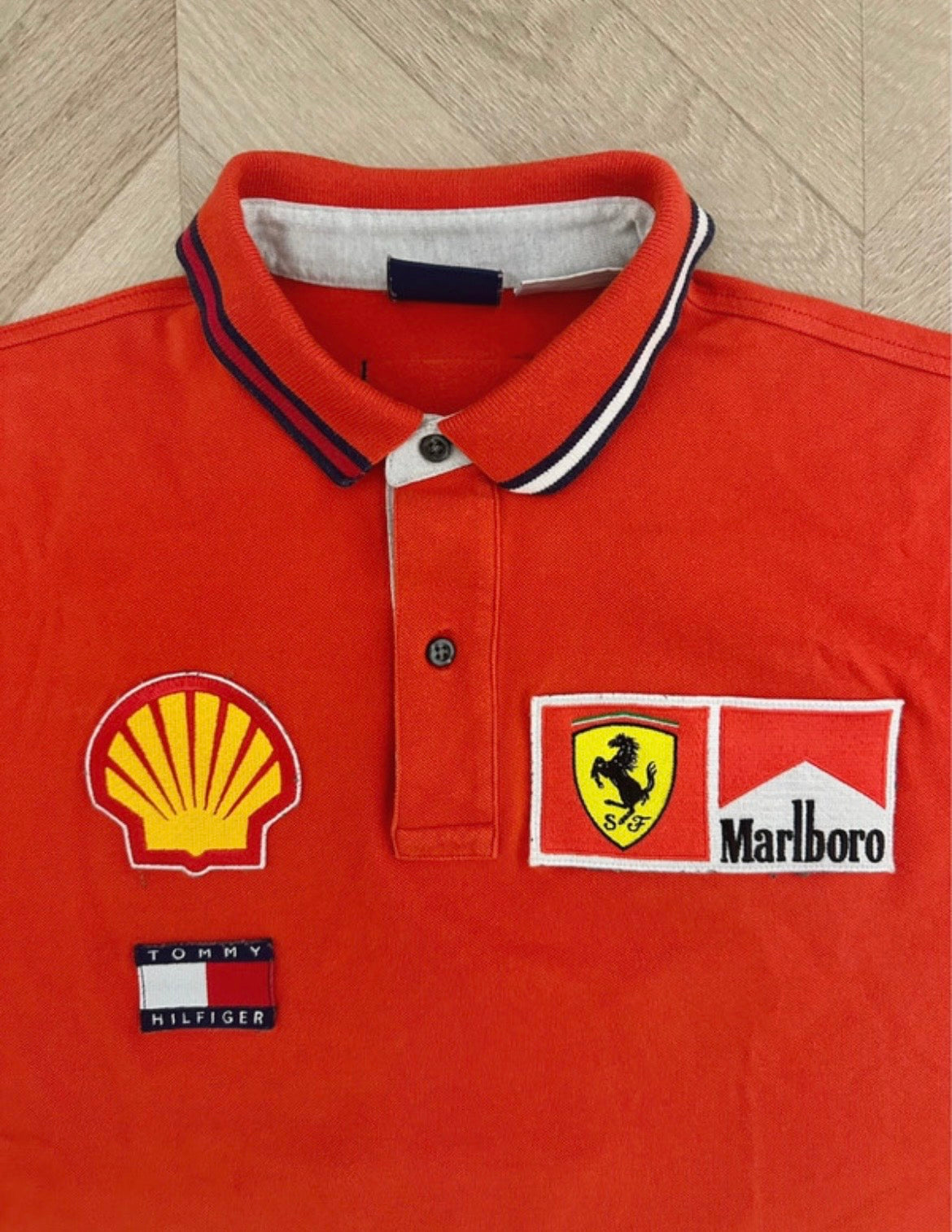 Fuel your style with a true piece of motorsport history. This vintage-inspired Ferrari Racing Polo captures the legendary "Marlboro Era" aesthetic, blending the prestige of Formula 1 with timeless 90s streetwear. Featuring iconic sponsorship patches and the world-renowned Prancing Horse, this polo is built for those who live life in the fast lane.